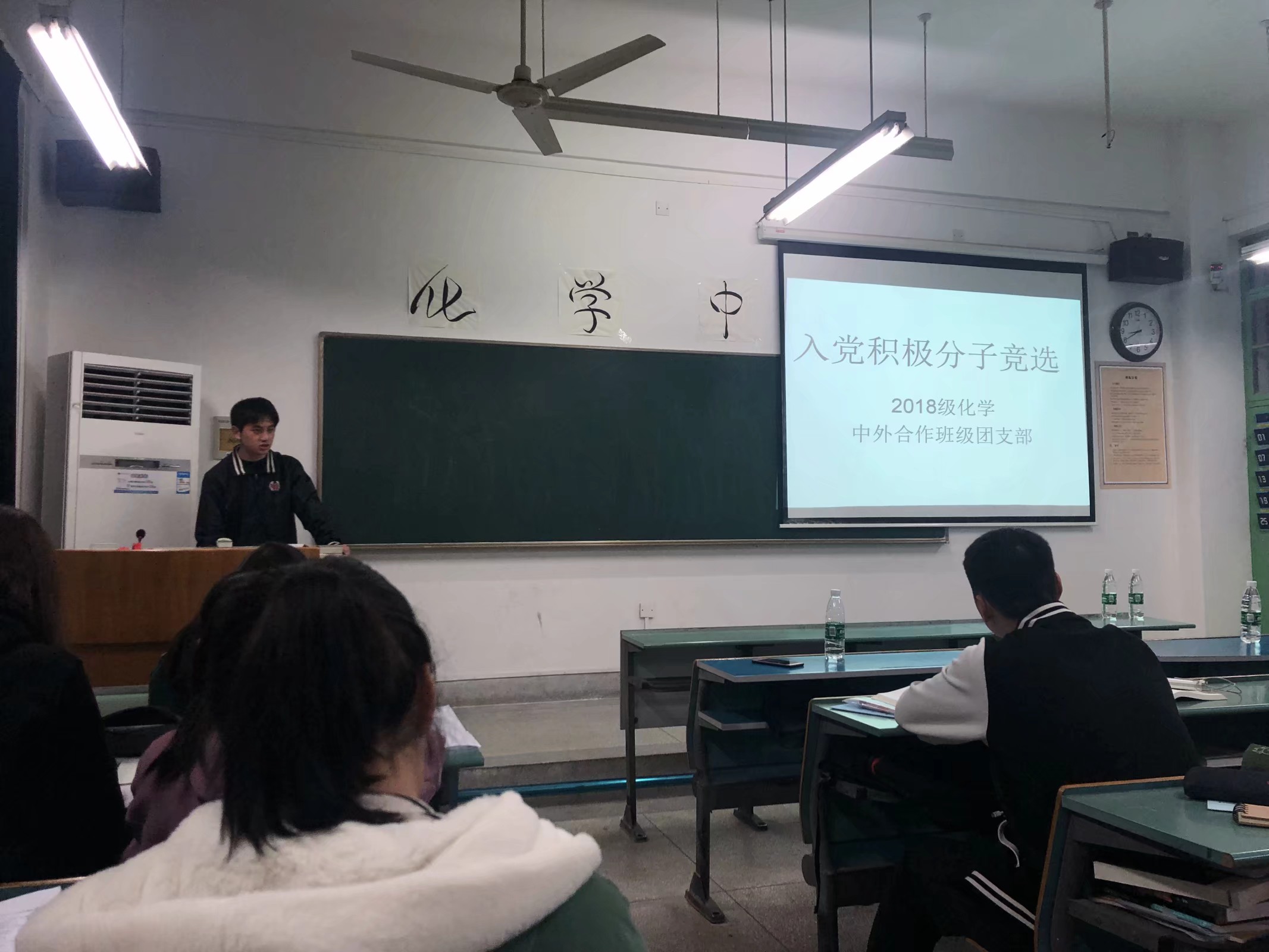 在学习经验交流会后,团支书丁逸飞同学主持了“入党积极分子推优”活动,旨在吸收班级内较为优秀的同学成为入党积极分子,积极向党组织靠拢。此次推选活动秉持着公平公正的原则,采取抽签定序、匿名投票的形式。7位参选同学依次上台演讲,各自阐述了自己对于入党的思考和看法,以及对于自己过去学习生活及思想建设的反思和收获。演讲结束后,辅导员陶勇老师主持了本次的匿名投票环节,最终魏妹同学和程艺青同学当选入党积极分子。