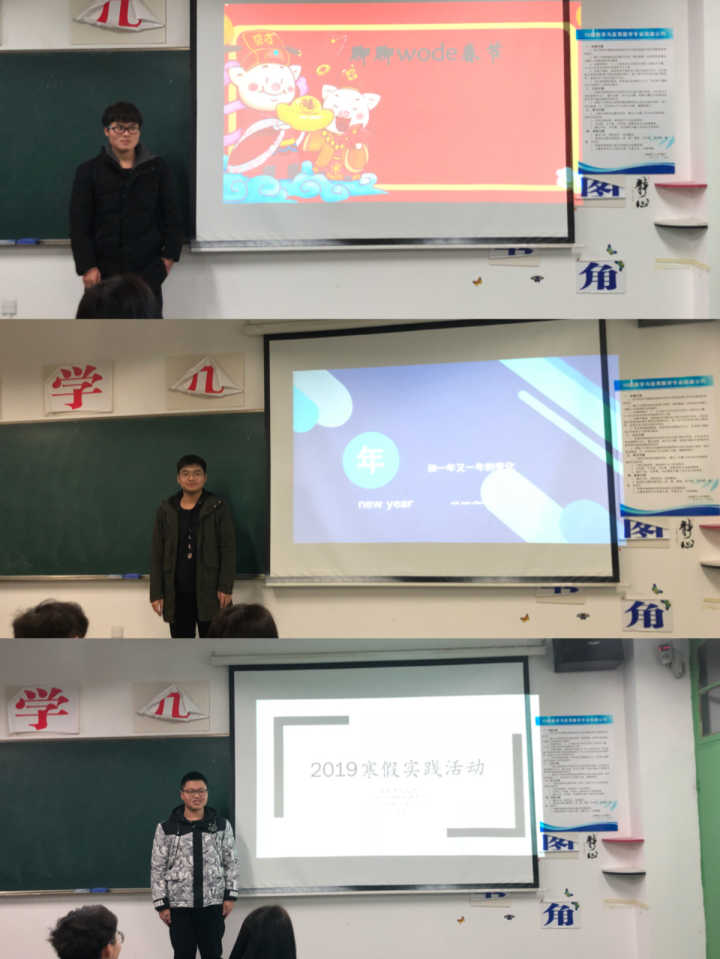 班会伊始,同学们在各自的团小组里讨论了寒假精彩纷呈的生活,从同学们的欢声笑语中,我们可以听出同学们的寒假生活所获颇丰。紧接着,部分同学上讲台朗读了寒假期间的读书笔记,《习近平谈治国理政》、《习近平的七年知青岁月》……一本本介绍治国方略、激励同学们努力学习的书籍给予了同学们丰硕的寒假成果。接踵而至的是家乡年味PPT的展示,来自天南地北的同学们纷纷晒出了自己家乡的年味,有美食、有风俗、有名胜古迹,各有千秋。还有参与志愿活动的同学,他们分享了寒假参与志愿的故事,鼓舞了我们积极参与志愿活动,向社会奉献自己的爱心。