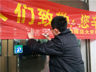 校内宣传,志愿招募。近日,环境保护协会于赭山校区食堂门口正式着手宣传,宣告本次活动就此拉开帷幕。在工作人员的宣传下,同学们踊跃报名、积极参与此次志愿活动并在宣传横幅上写下自己对环卫工人的祝福与感恩。宽大的横幅上,布满了一条条祈福的话语、一句句温馨的祝福,这是志愿者们对环卫工人们的敬爱之情,更是是广大同学们对本次活动的肯定与认同!与此同时,协会微信平台同时推出系列宣传活动,将这份冬日里温暖的志愿之火扩散到每位同学心中。