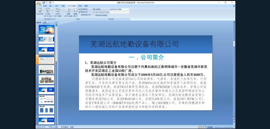 在一片掌声中,纪老师正式开始了这次的会议。首先纪老师为我们详细介绍了芜湖远航地勤设备有限公司的相关情况。芜湖远航地勤设备有限公司成立于2006年5月26日,公司注册资金人民币3600万,公司经营范围包括民航地面特种设备和特种车辆开发、设计、生产、销售和特种机械设备维修服务等。在整个疫情期间,该公司采取了一系列措施有效地规避了疫情可能带来的风险,及时地降低了企业的经济损失。