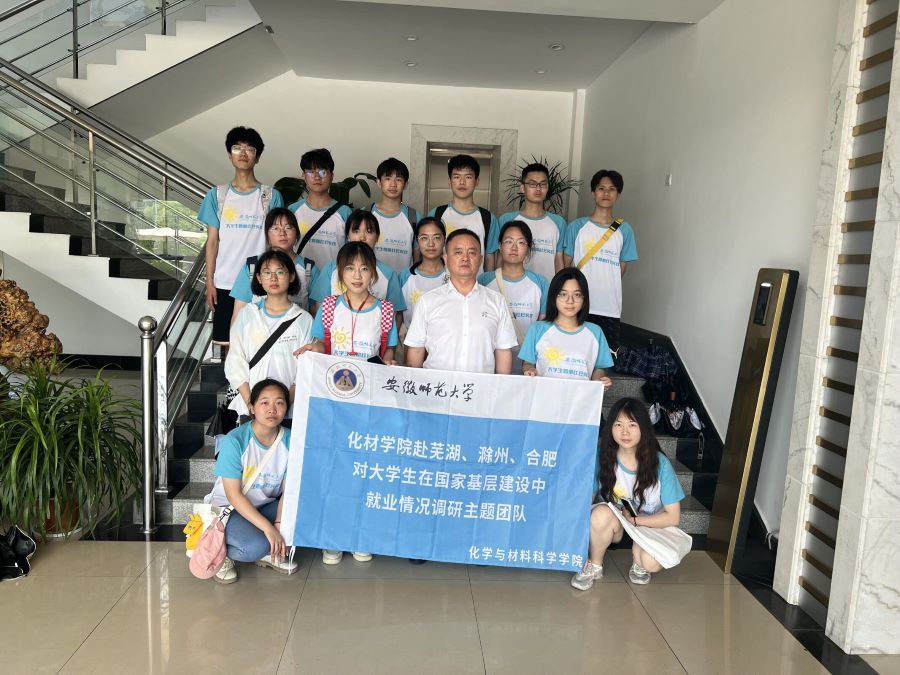 本网讯(化材学院 程蓉)近年来,类似于“大学生越来越难找工作”的声音此起彼伏,教育部预测2022年将会有1076万高校毕业生踏入社会参加工作,有人说很难找到这样一个市场,来让这一千多万大学生都能够全部找到让自己满意的工作。为调研当下大学生找工作难题原因和企业对大学生就业的要求,6月30日下午一点,安徽师范大学化学与材料科学学院赴芜湖、滁州、合肥对大学生在国家基础建设中就业情况主题调研团队前往安徽神剑新材料股份有限公司,在企管部经理施旭的介绍下了解公司发展历程,并就大学生“就业难”问题展开对话。