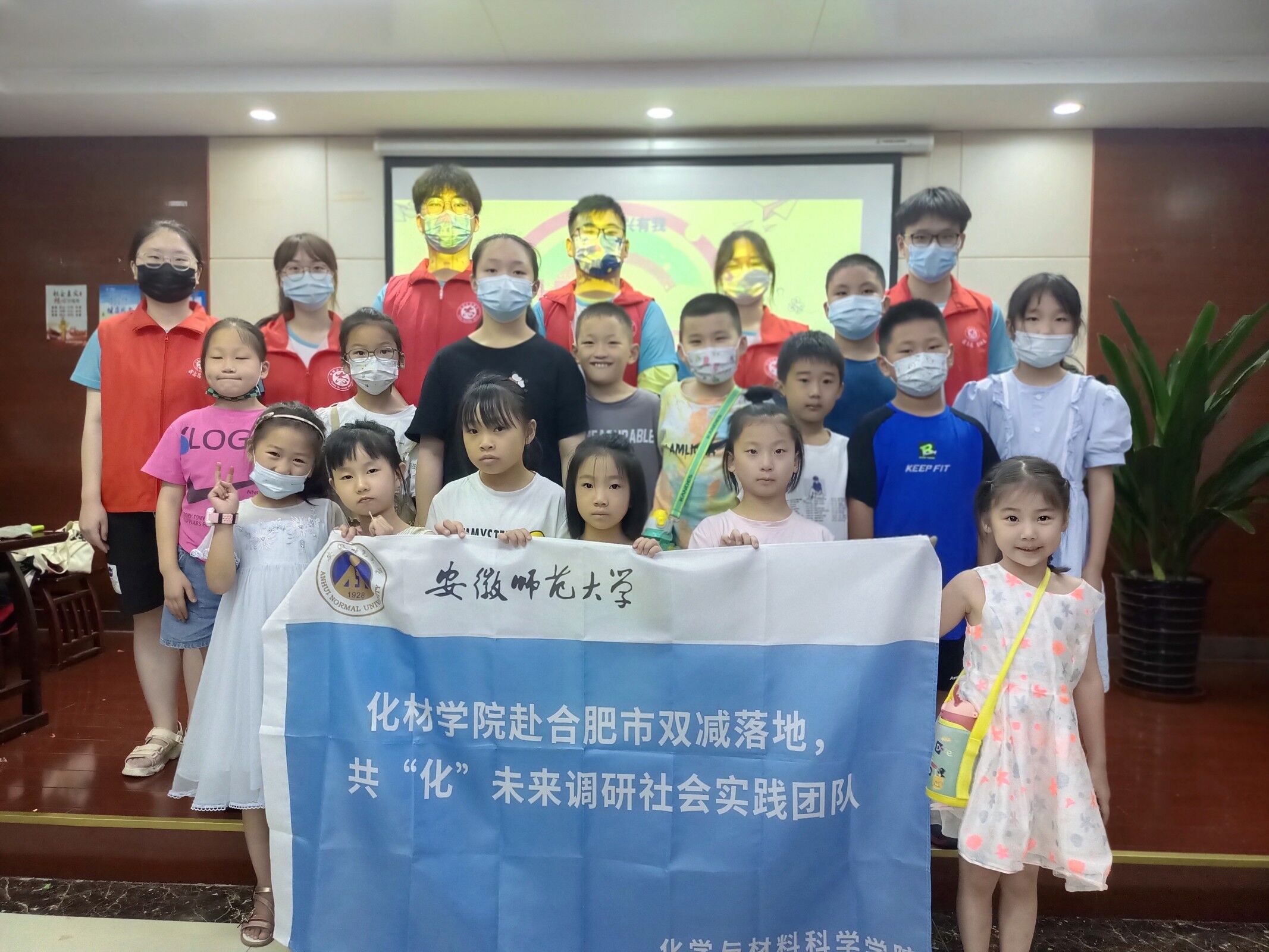 本网讯(化材学院 张涛)2022年7月4日上午9点30分,为深入学习习近平新时代中国特色社会主义思想,贯彻落实中共中央下发有关“双减”政策的主要内容,安徽师范大学化材学院赴合肥双减调研团队于合肥市包河区滨湖欣园社区居委会开展趣味科普实验活动。