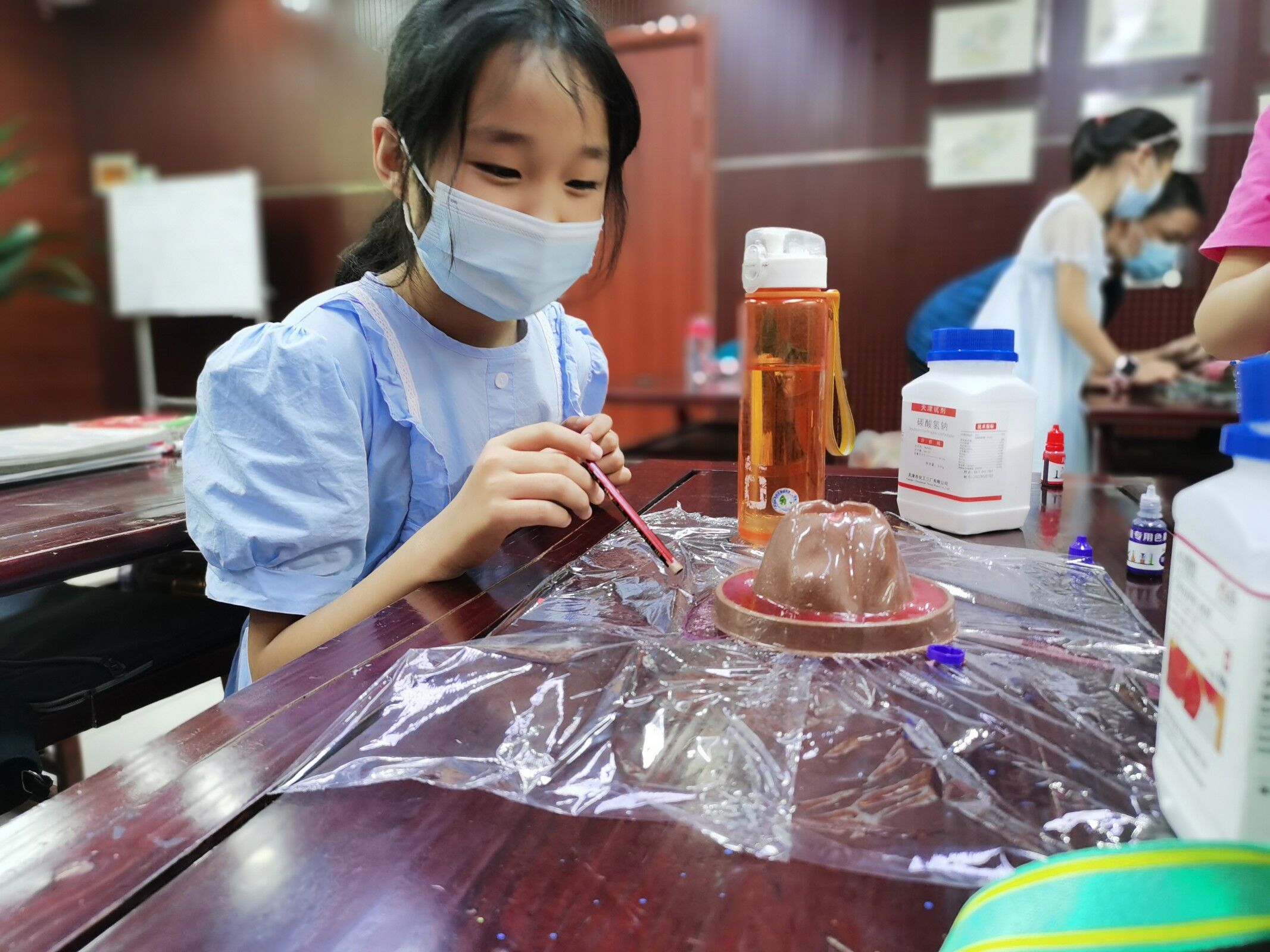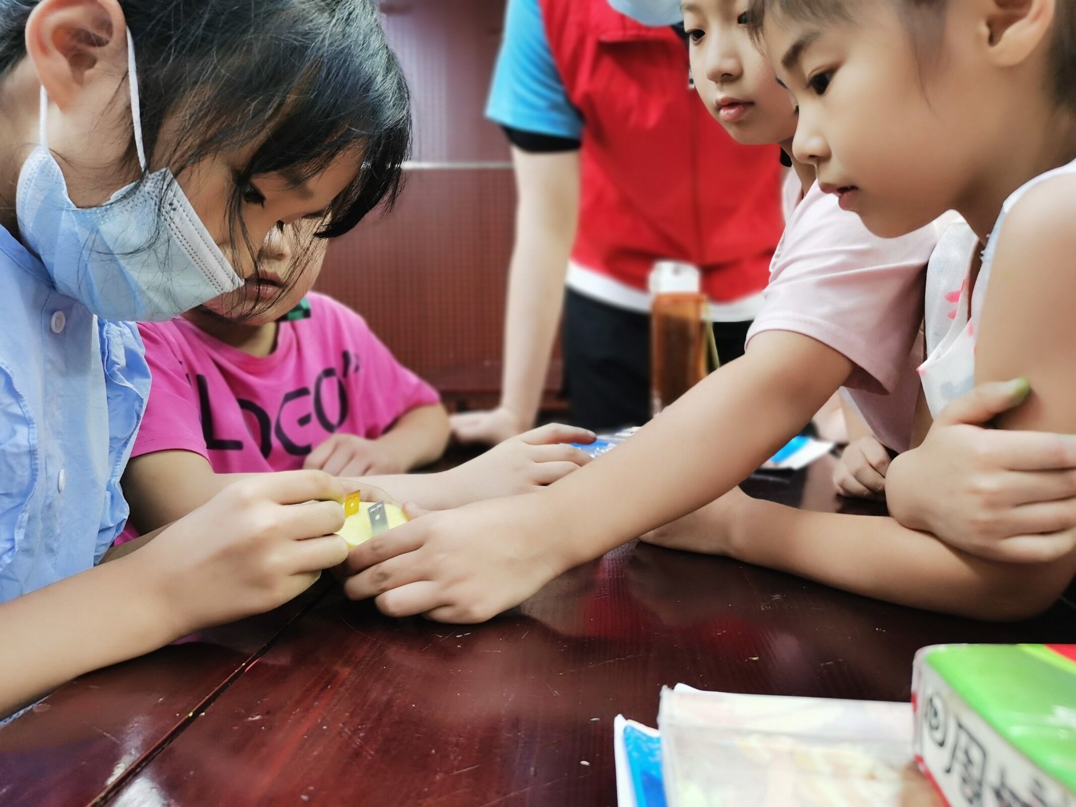 行是知之始,知是行之成。“双减”政策要求全面落实国家关于减轻学生过重学业负担有关规定,并为学生们开展丰富多彩的科普、文体、艺术、劳动、阅读、兴趣小组及社团活动。为贯彻落实“双减”政策、培养学生实践创新能力,在活动开展过程中,团队成员张家银、吴菁华、周川洋分别向小朋友们展示“火山爆发”、“自制熔岩灯”、“水果电池”三个科普创新实验,三名成员寓教于乐,并积极鼓励小朋友们自己动手操作。