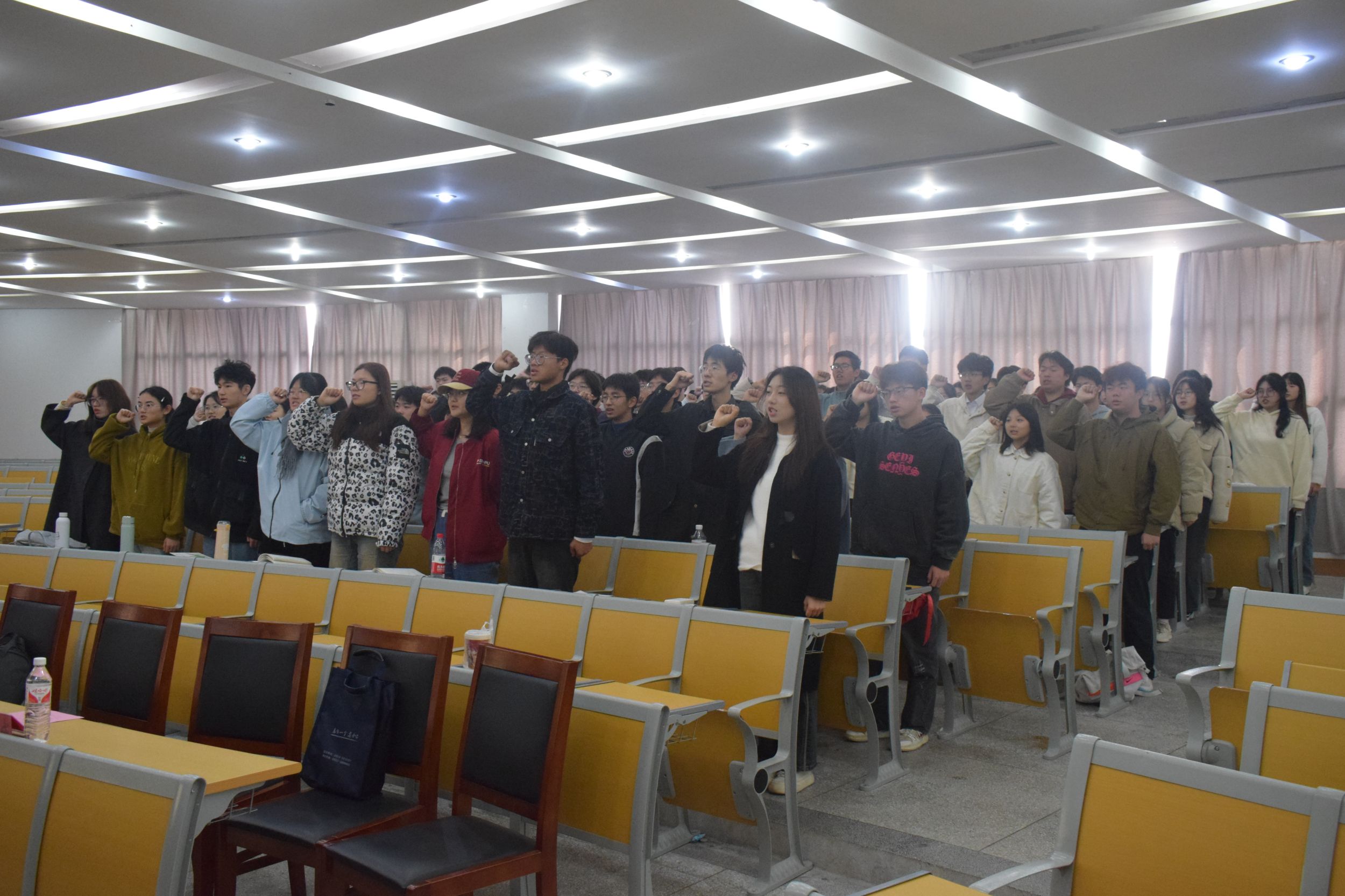 化材学院团委副书记(学生兼职)汪子欣在发表就职演讲,首先代表化材学院2023届团委学生会向领导老师和同学们致以诚挚的感谢,强调要深入学习习近平总书记关于青年工作的重要论述,坚定听党话、跟党走,努力成为有理想、敢于担当、能吃苦、愿意奋斗的新时代青年。坚信在院党委的领导和团委指导下,新一届团委、学生会成员将开拓创新,创造更加美好的未来。2024届学生会主席团成员沈阳带领本届团委、学生会的全体成员进行了庄严的宣誓。